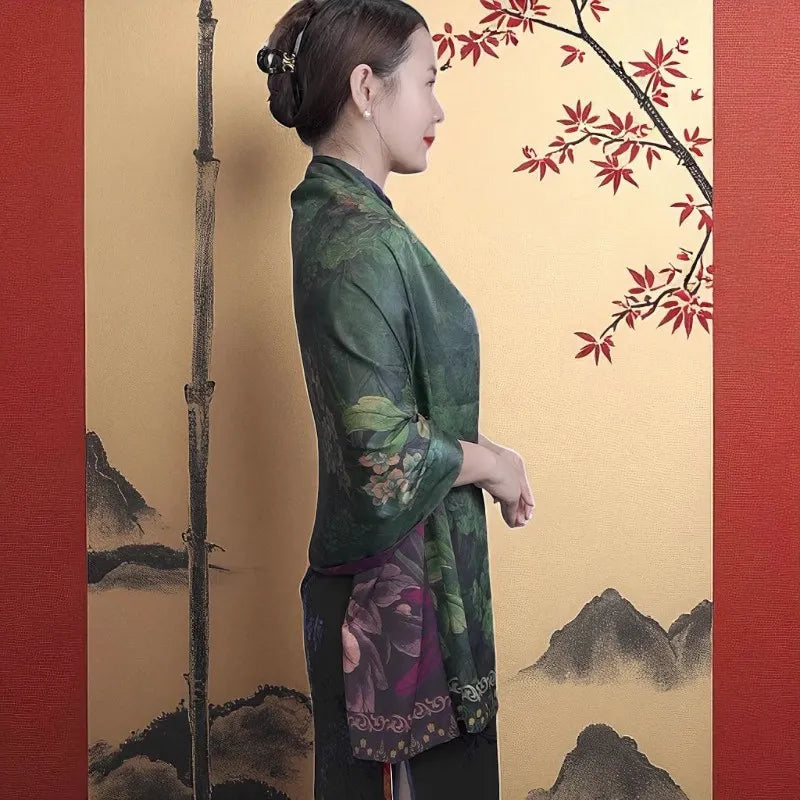 Elevate your style with this double-sided silk scarf, designed with elegance and versatility in mind. Crafted from 100% mulberry silk, it blends traditional Chinese charm with modern luxury, making it the perfect accessory and gift.