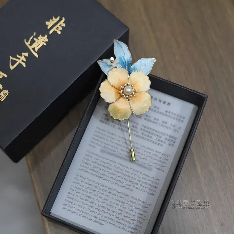 Handmade Suzhou Velvet Flower Brooch – Hanfu & Qipao Pin, Gift Box